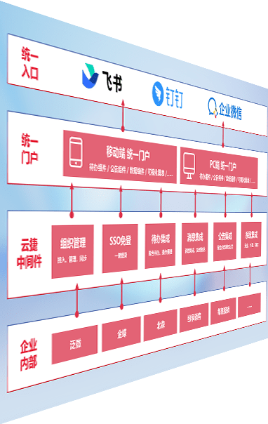 对协作平台提供支持服务,,支持企业应用与协作平台对接,,包含组织同步、、、消息集成、、、、待办集成等。。。支持目前主流的协作平台:钉钉、、、企微和飞书。。